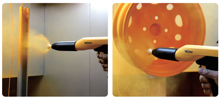 Bajo la doble fuerza de aire electrostático y compresor, el polvo cargado se adhiere uniformemente a la superficie de la pieza de trabajo para formar una capa de polvo uniforme, luego curado por un horno de curado en polvo y transformado en una película de polvo durable.