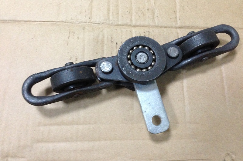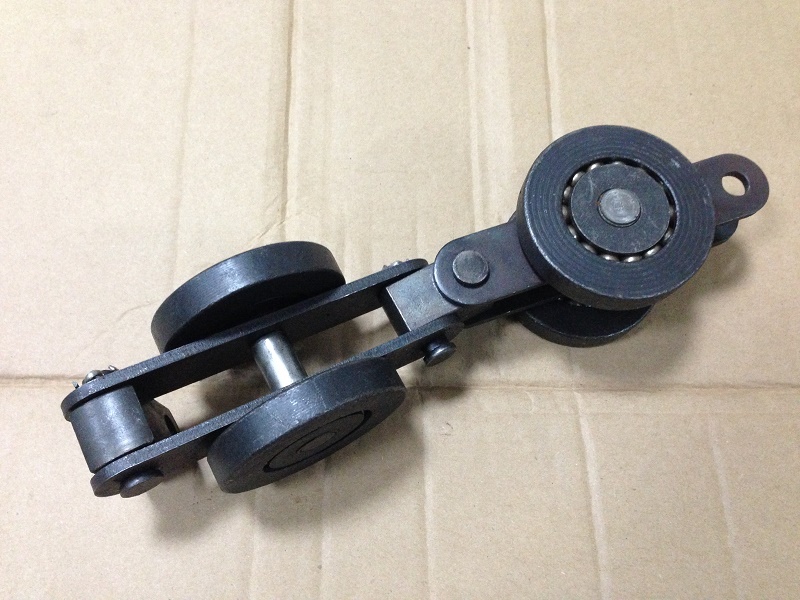 Utilice perchas para fijar la carga a la cadena de transportadores superior, la cadena de transportador superior lleva cargas a lo largo de una pista con esta serie de ruedas verticales y horizontales alternas de rodadura suave.